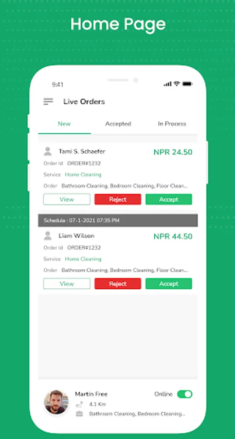 -Manage profile details such as name, email, contact, profile picture and service radius