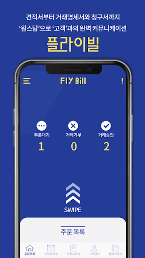 플라이빌을 통해서 견적서 전송, 주문수신 및 거래명세서 발행, 거래명세서 고객인증 및 취합된
