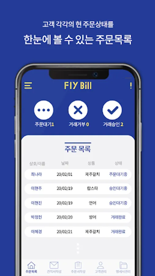거래 및 고객관리 APP 플라이빌 입니다.