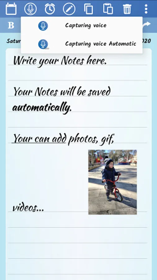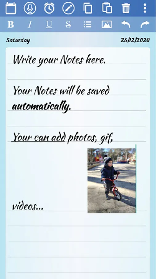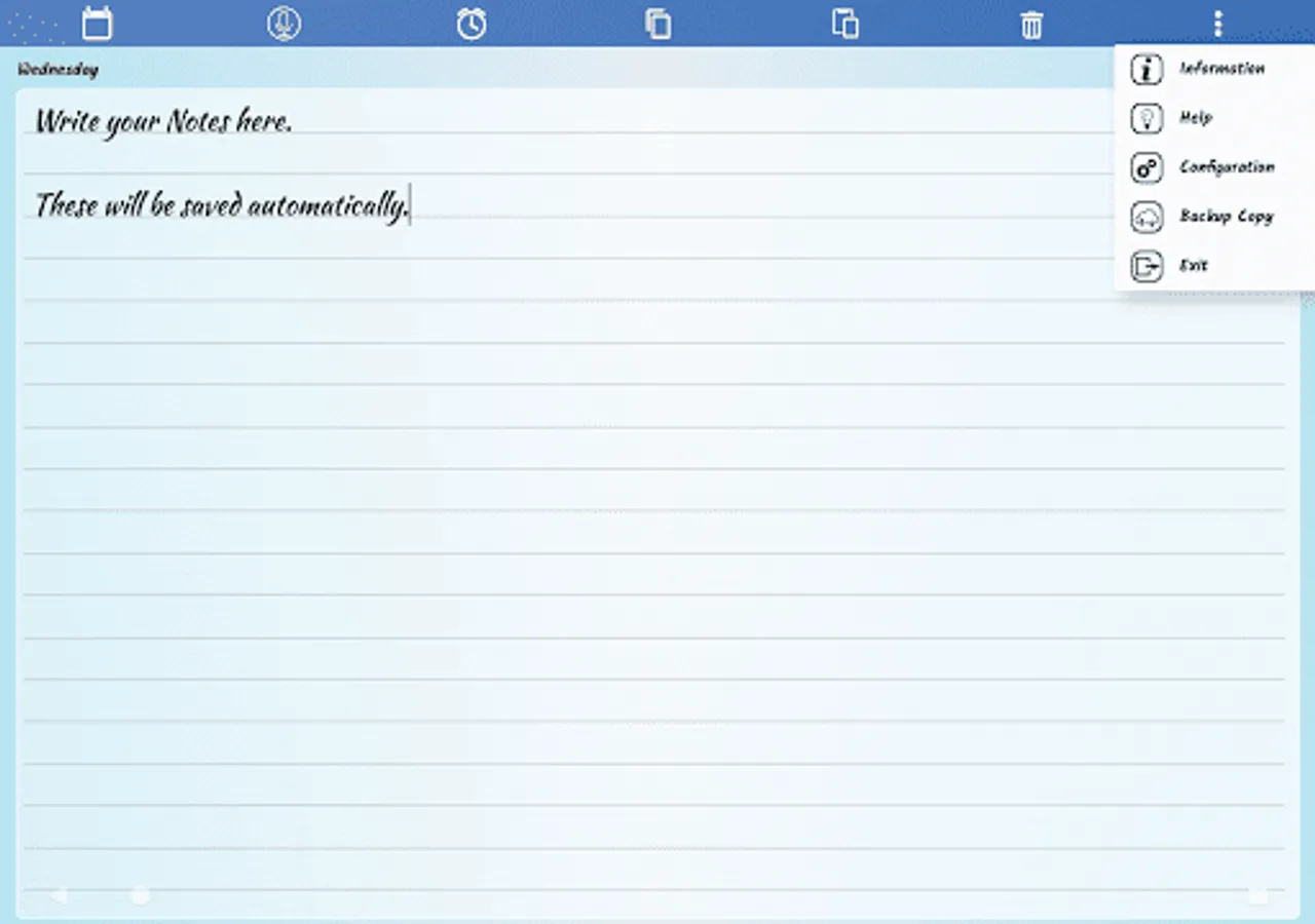 Notes Calendar is very easy and intuitive to use, just select the date on which you want to enter a note and start typing, your note will be saved automatically (no need to press any buttons for your note is saved), you can continue to make annotations on other dates or exit the App, and when you return to your notes app available so that visualize, amend or delete them.