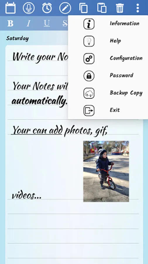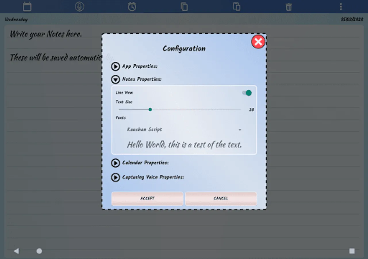 Turn your device into a personal agenda, by which you can record your daily tasks, reminders, notes, messages, make lists... through 'Calendar Notes' will find a simple and fast personal agenda.