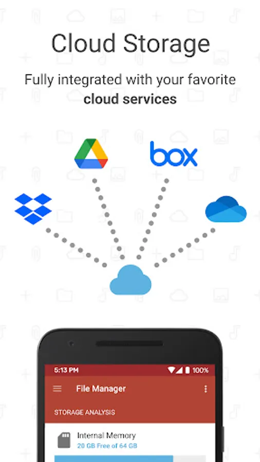 Access files on microSD, complete a large file transfer and backup a file, folder, or directory on usb flash drive. File Manager will transfer content between internal storage, USB flash drive, and cloud storage