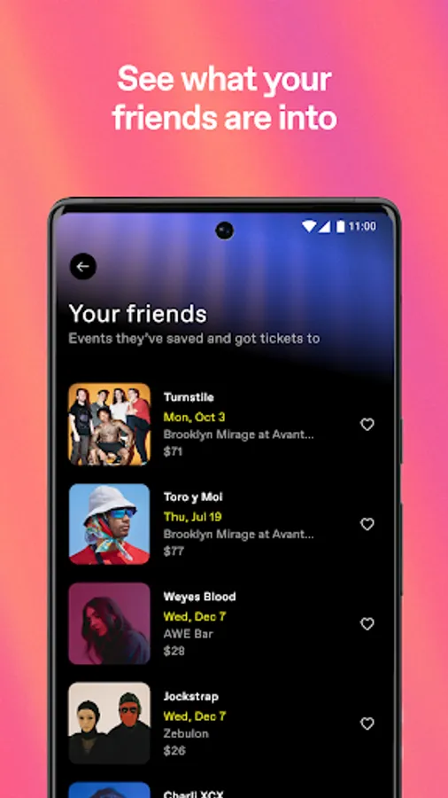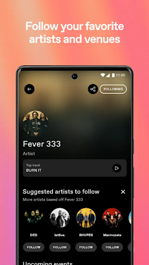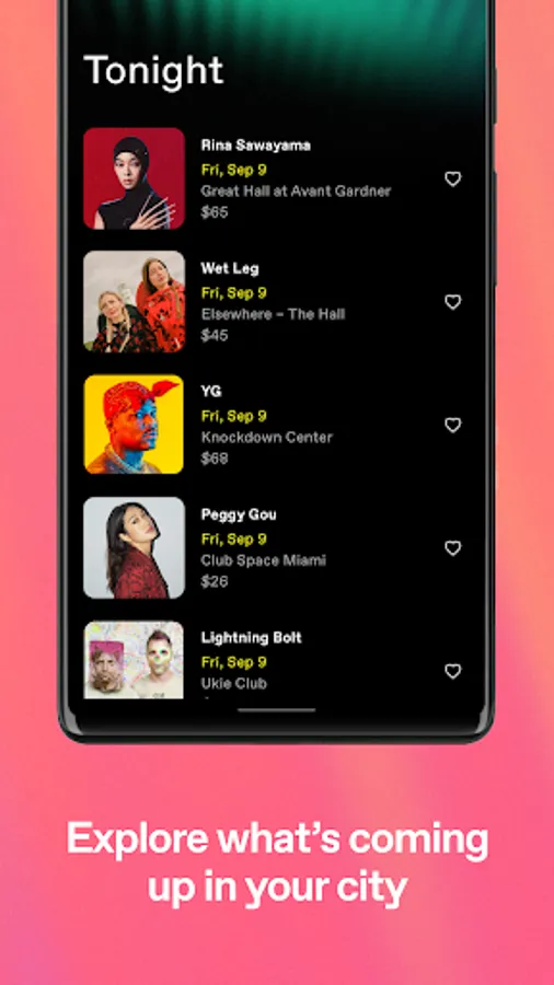 Follow your favorite artists and venues, and be the first to hear about new shows.