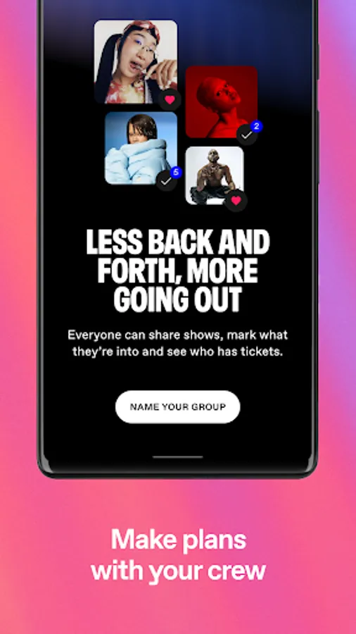 Save events for later, set reminders for when tickets go on sale, and check if tickets are running low.