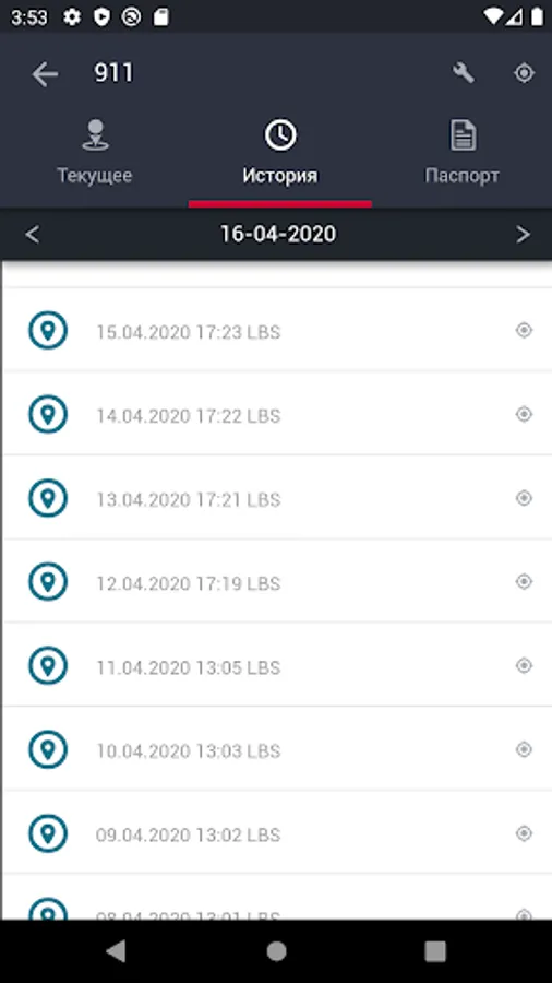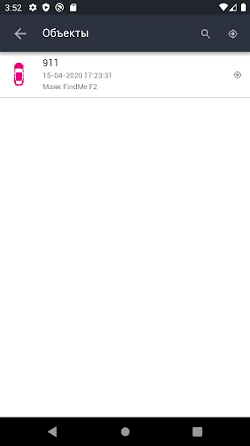 For each vehicle on which the FindMe search beacon is installed, the application displays the coordinates of the location, the time of their transmission and the accuracy of the determination, speed, temperature and signal level. Information is available both for the current time and for the selected date. Monitoring and management of work is carried out for all search beacons located in your account on the site https://lk.911.fm/