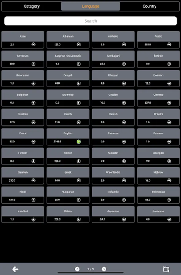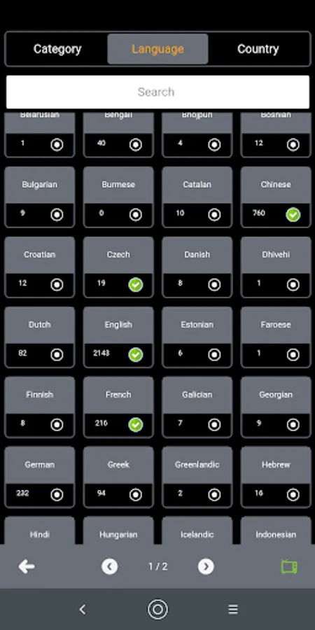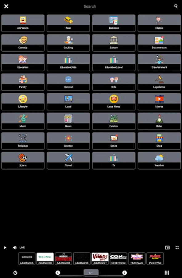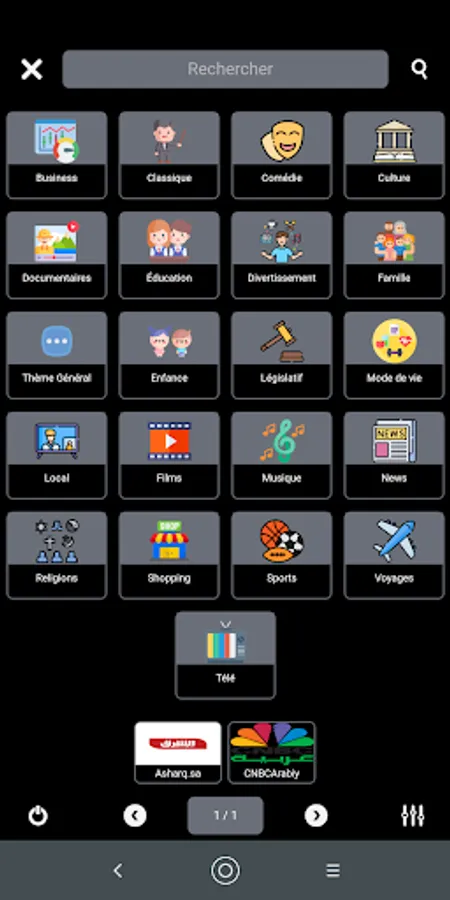 Channels sorted by categories