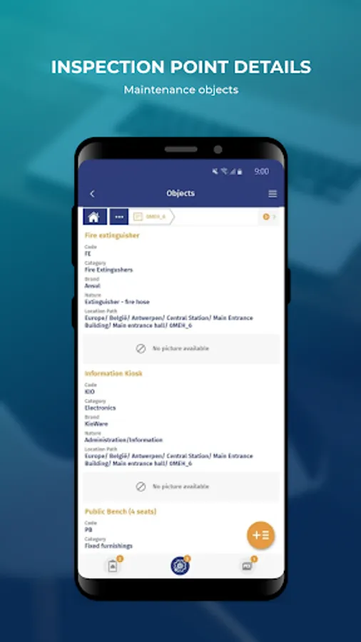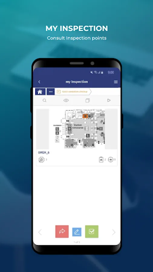 Execute inspections following a pre-defined route, supported with pictures of the location and assets to inspect