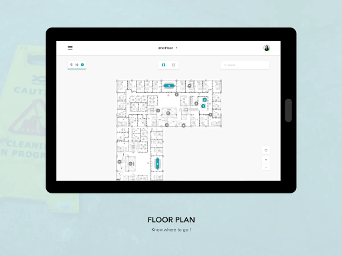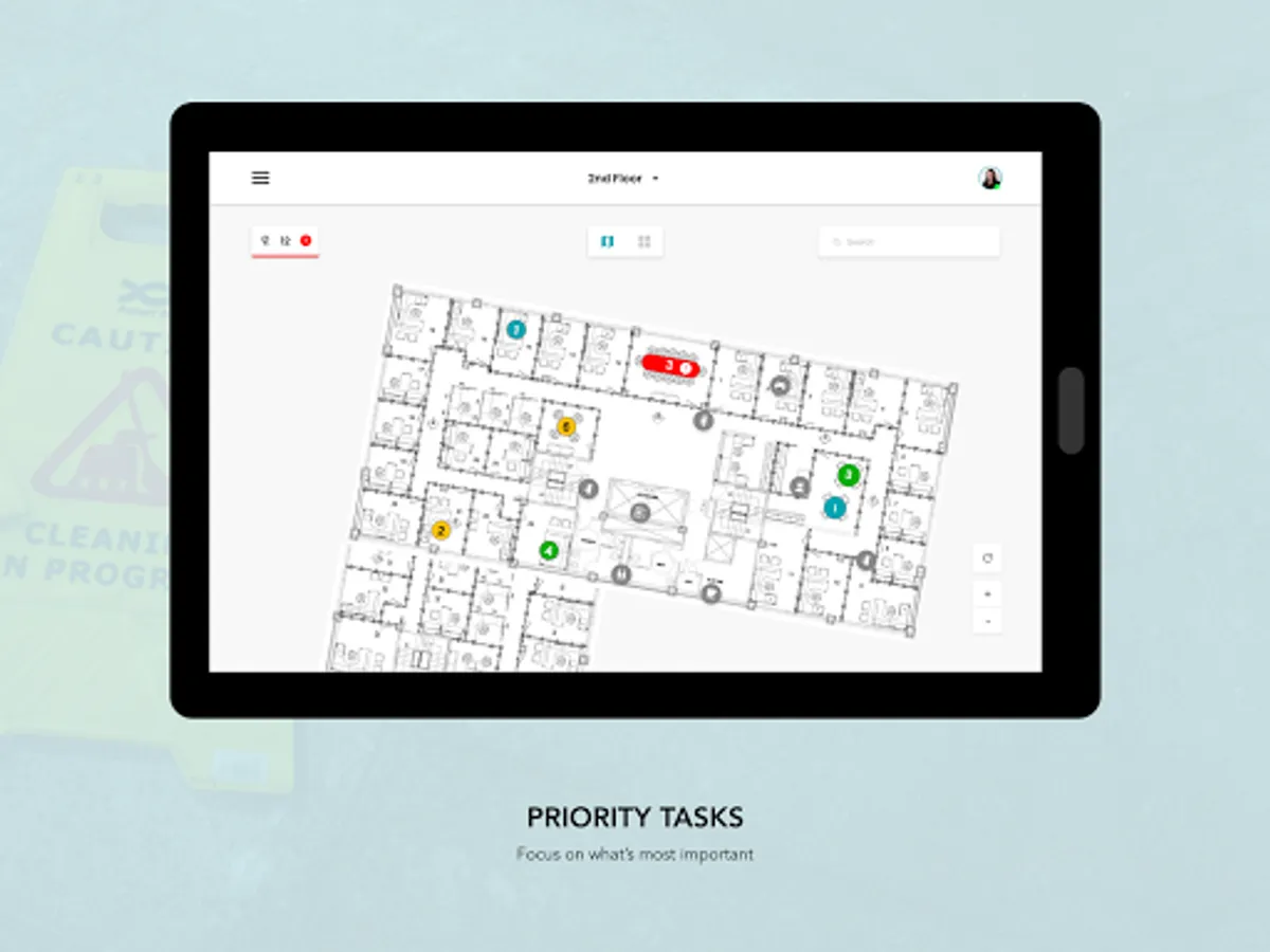 • See very simple pictogram-based work orders highlighted on floor plans, clearly indicating which tasks must be performed and where, automatically sorted based on priority