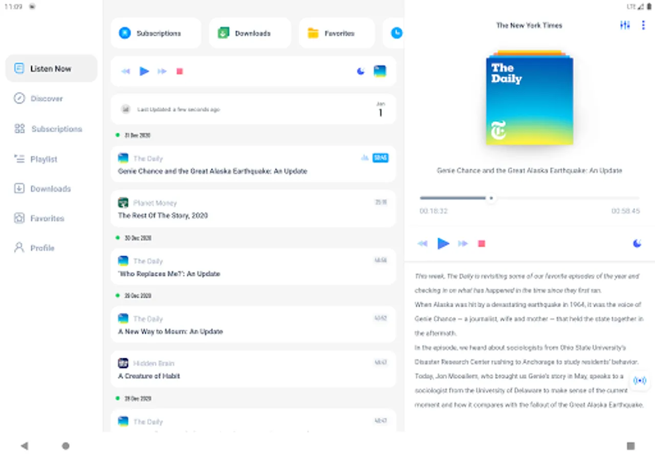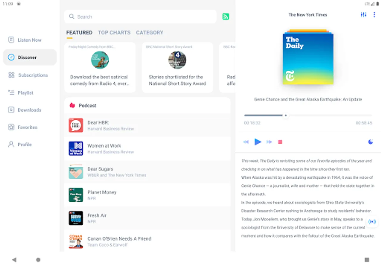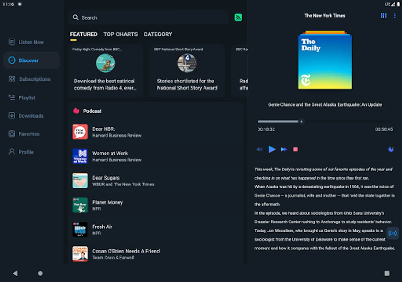 - Personalized home page with the latest episodes of all your favorite podcasts