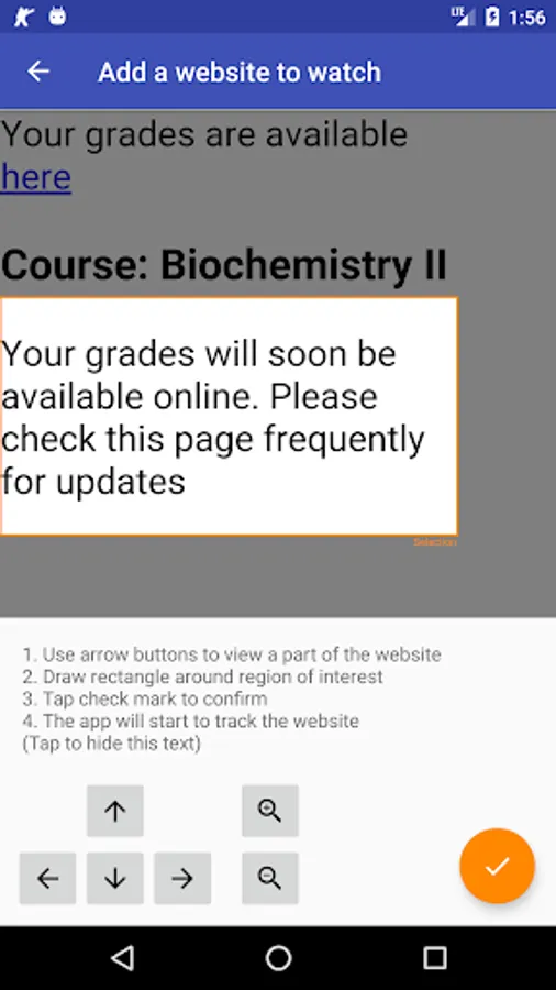 3. The app will start to follow that page, and check it periodically