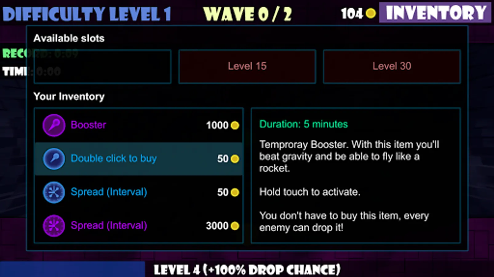 - An item mechanism and an inventory where you can buy every item that can drop.