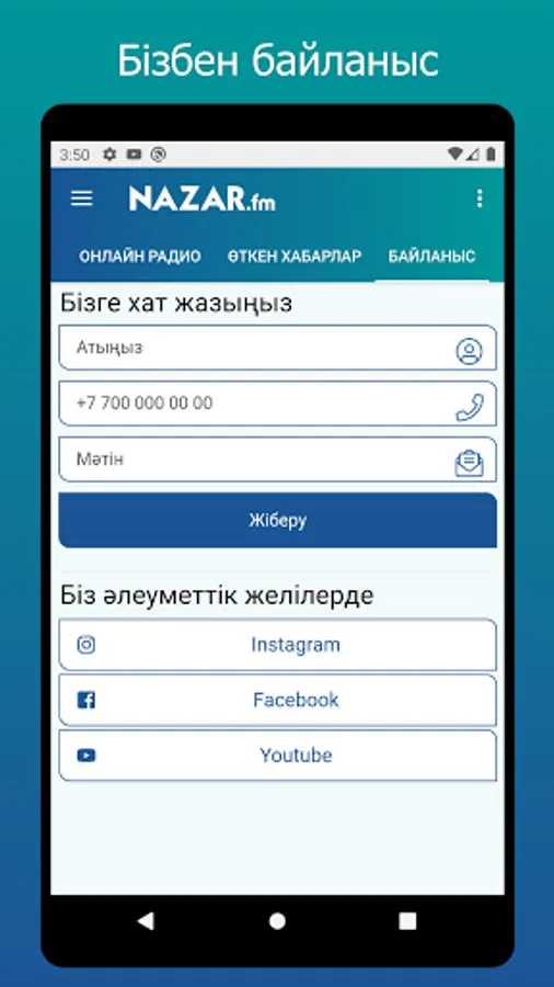 Nazar FM RadioSynda bіz sіzdermen tіkeley қарым-қатынааст бола аламыз. Sondytan bіzdің maқsatymyz әdetegі қarym-қatynasty өzgertu emes, onyң ırna tikeli қarym-қatynasty ornatu. Alaidah Өйткені Назар ФМ Radiosy sіzdің zhany текyzda - tech қana Internet arқyly bіzdің siteқa іілсеңіз бғаны. Üuanyshta yes, zhшbanyshta yes tіptі қalzhyңdasakta, zhylasakta bіz sіzben bіrgemіz. Sebі zhalғyz өzің eshқashan bakyty bola almaysy degenem bar. Біздің ңуе Толқыны арқылы өзіңіз үшін күнделікті шынайы өмір салтына тықтай жол ашатын көпірі sala alyasyz.