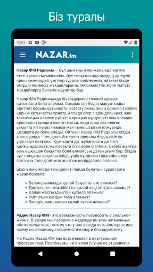 Nazar FM Radiosy - better shynayy Umіr zhayynda Ugіme ettinіlken mүmkіnshіlіk. Қуе Толқінында өмірдің әр түрлі қиын еке ін ір ін ідгімі іміттер ا ала ала ала ала ала ала ала ала ала ала ала нд нд нд нд і і і і і