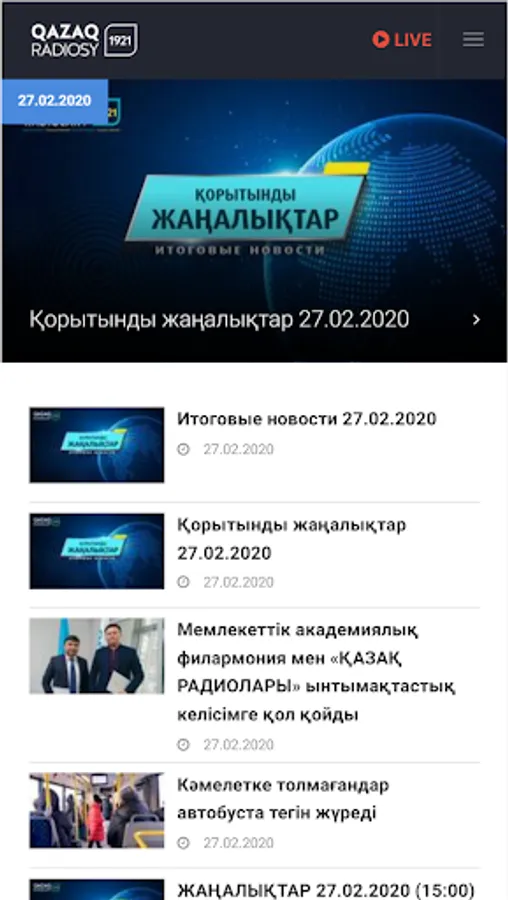 Kazakh Radiosy is a radio network owned by Kazakh Radios that broadcasts to residents of Kazakhstan, to Kazakh listeners in the CIS and abroad. Kazakh radio broadcasts include radio broadcasts from Astana and Almaty and regional centers. Broadcasts are broadcast on long, medium, short and ultraviolet waves. Broadcasts (news, reviews, reports, etc.), socio-political, economic, scientific, educational, literary and dramatic, music, sports and other broadcasts will be covered.