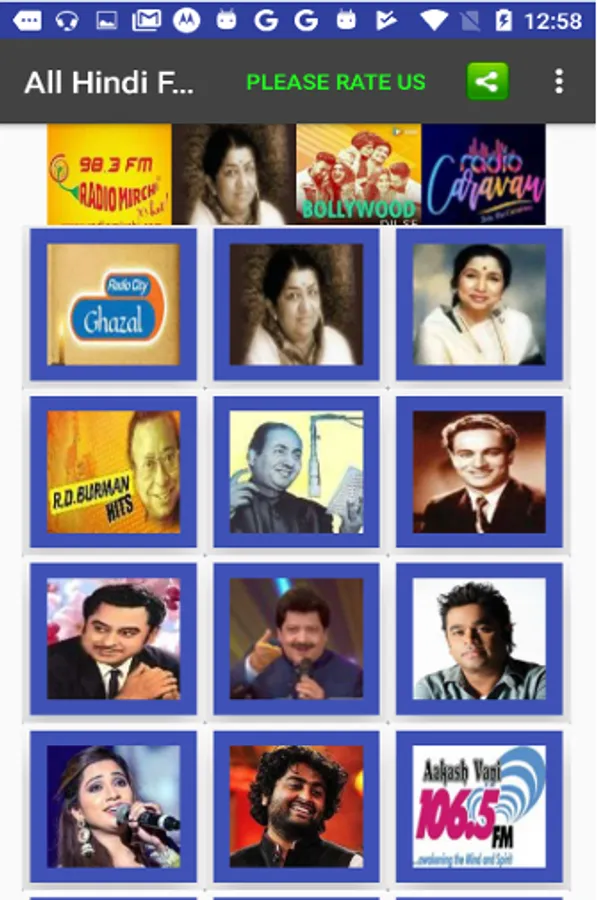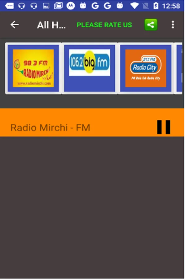 This Hindi Online Radio App gives all the best FM Stations to listen to Hindi song.In this fm Radio (रेडियो) users can enjoy listening to Hindi songs from this Radio Hindi HD App. Old Hindi Songs, new hindi songs, 90s, 80s Songs, Latest Hindi songs are available in this app.