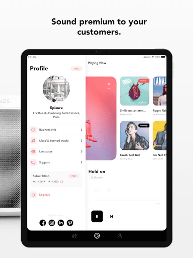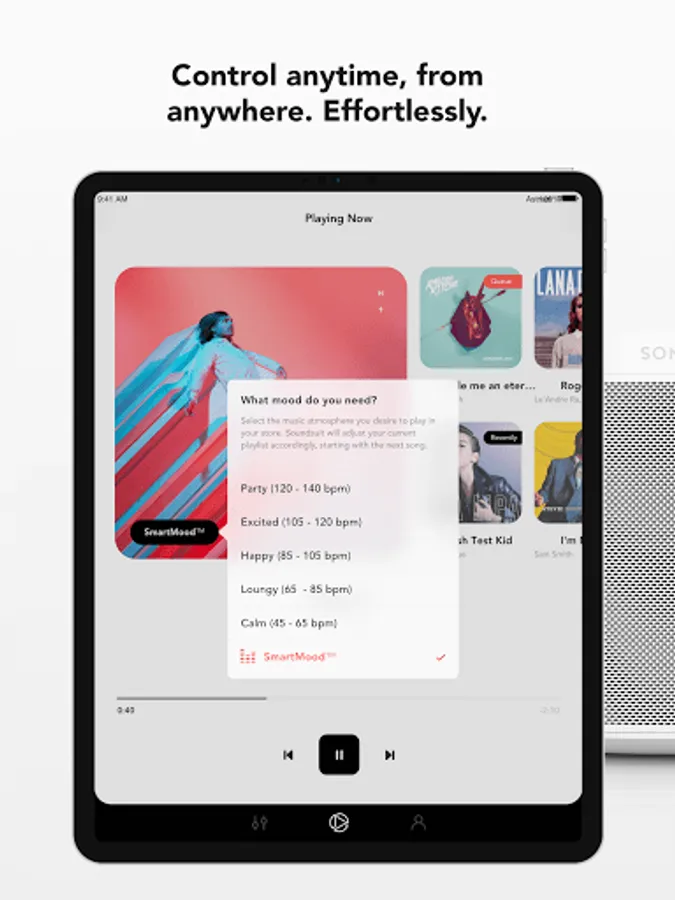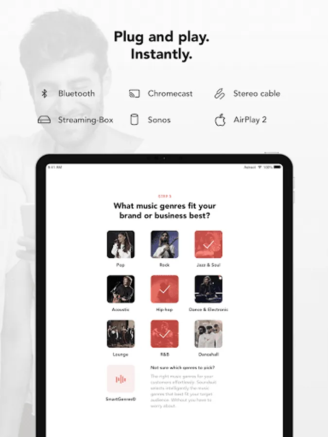 Soundsuit assists you in creating playlists that truly match your business and customers. And lets you easily control the music via app. Whether you manage one or hundreds of locations.