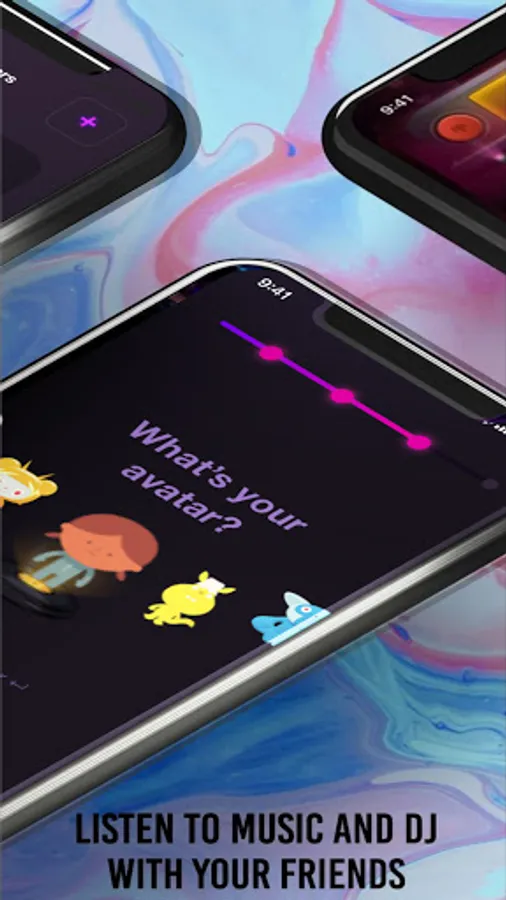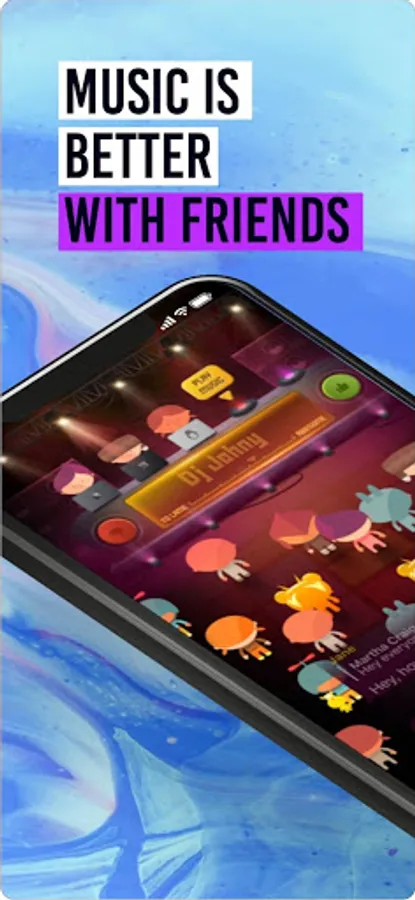 Show your approval for a song by clicking the green thumbs-up button on the vibe meter and make your avatar dance! Follow your friends to get notified whenever they start DJing. Chat live with playlist curators and artists you love.