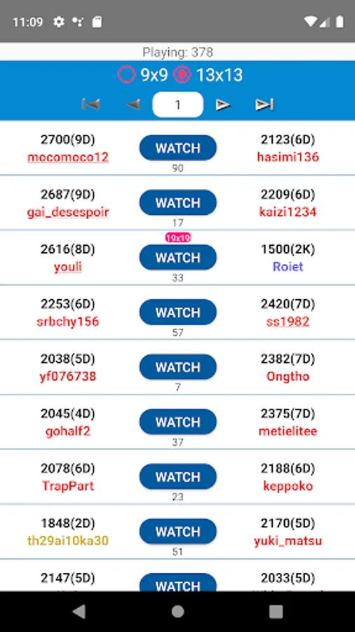 - You can choose from 9x9, 13x13 and 19x19(new! only at peak hours)