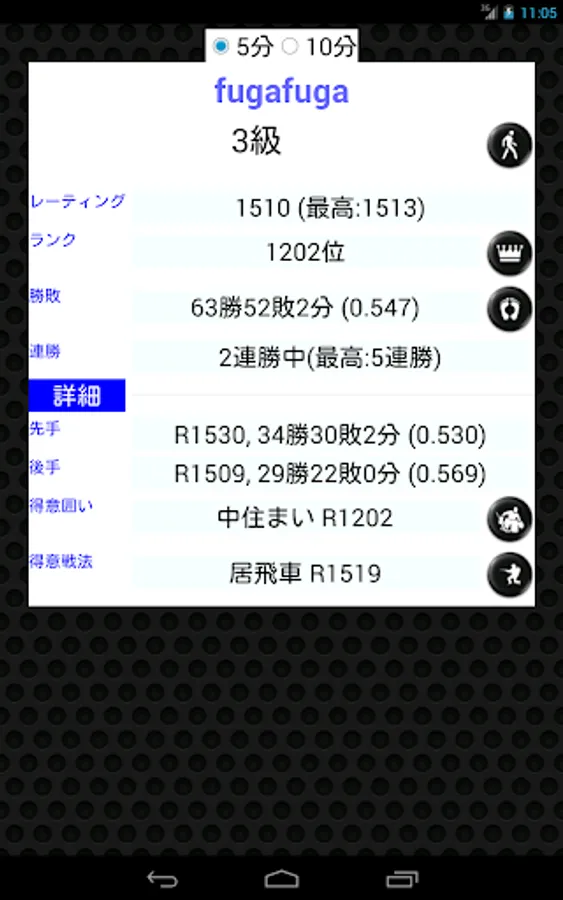 2. Detailed records. Ratings, wins/losses are stored separately for Black/White, different openings and castles, so you can easily grasp your weaknesses.
