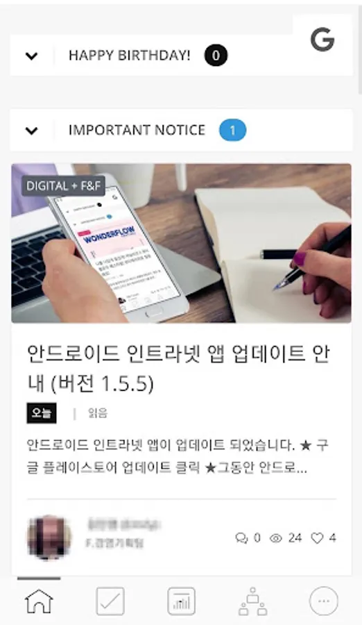 It is a mobile communication tool used by F & F, F & Co employees, related company employees, and store employees. Features will continue to expand.