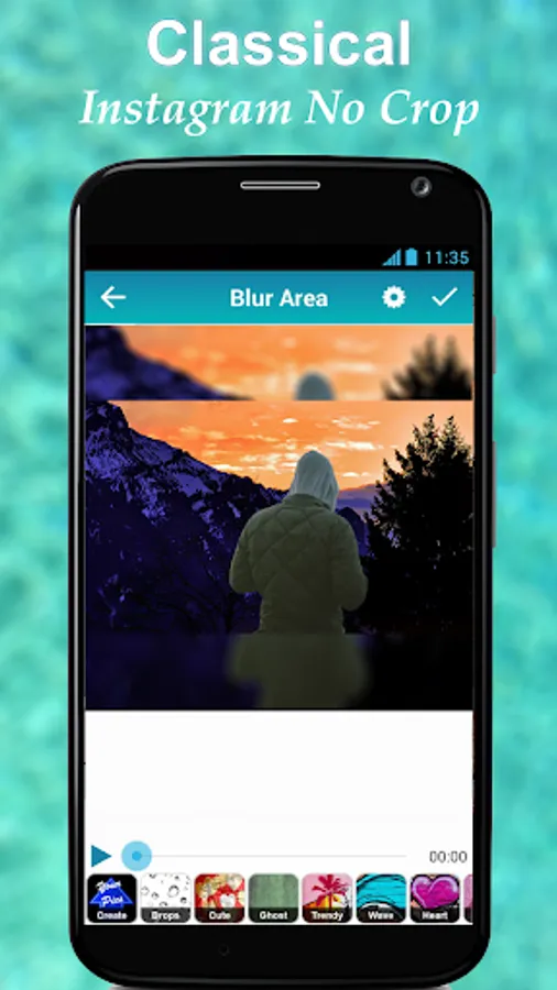 2) Instagram no Crop. You can add the blur effect in the missing area to square your videos. But why just blur..? be creative, stand out of the most adding effects or something completely and truly yours. The free space is for your fantasy.