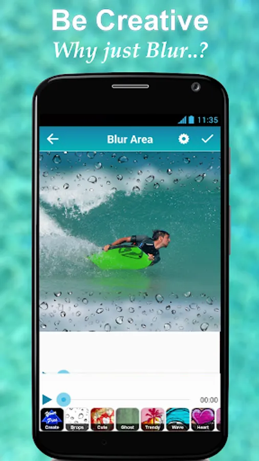 3) Fun Blur. Select a shape, select inside or outside, play the video, move your finger on the video. Check the preview. If you like, then process, otherwise repeat. Get fun with your friends. Watch and share your videos on Intagram, Snapchat or other socials.