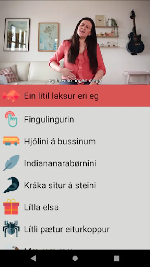 Child-friendly app with Faroese children's songs, sung by Erla's hardworking. Perfect for activating children and learning song content. Child-friendly format and easy to use. 17 classics also to sing along to. Does not require an internet connection to play.