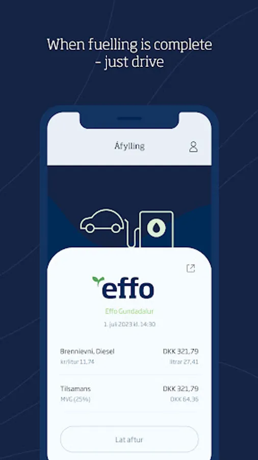 Easier and faster fueling. Open the pump in the app and start fueling immediately. When fueling is complete, you receive a receipt, and the purchase is complete.