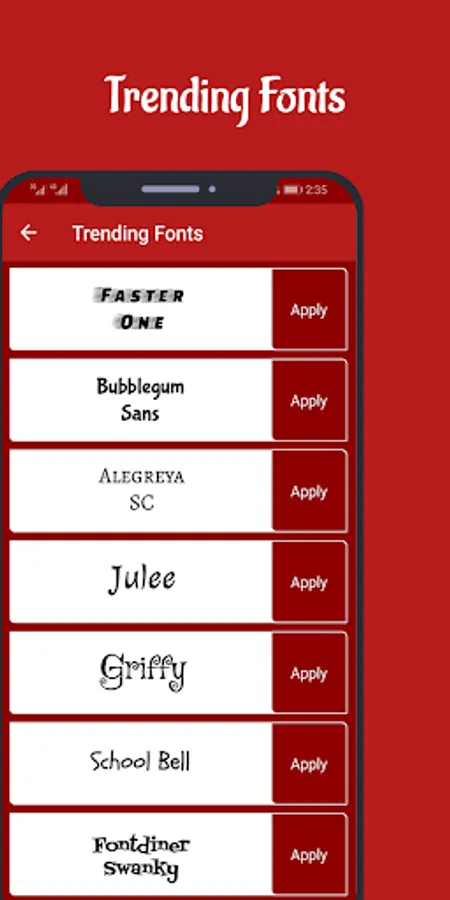 This font app will also perform the action of font changer, soon we'll add arabic fonts, thai font, schriftart, fuentes, caratteri and apple fonts in this app to make it globally and you guys need not to root or install ifont app anymore.