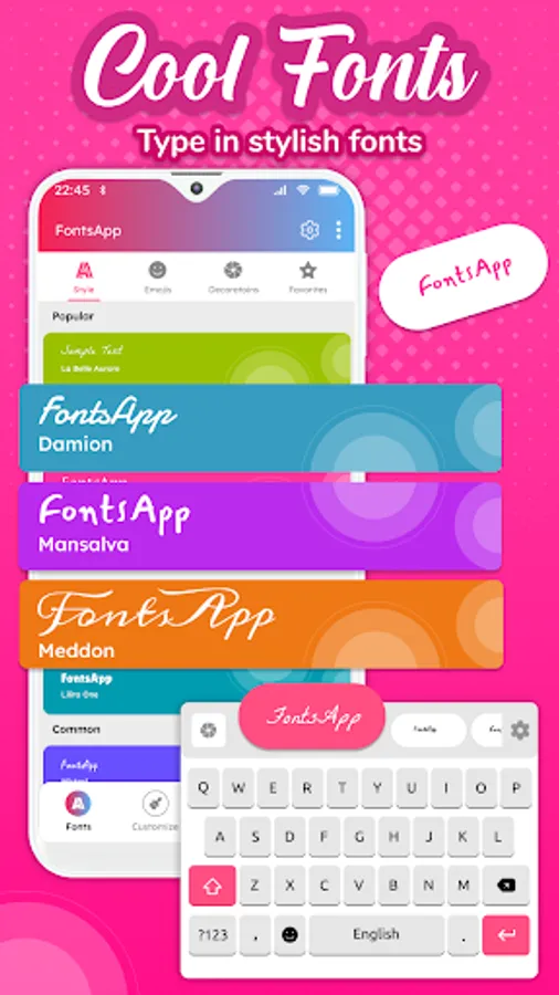 Font app provides beautiful font art, colored themes, and funny emojis. Impress