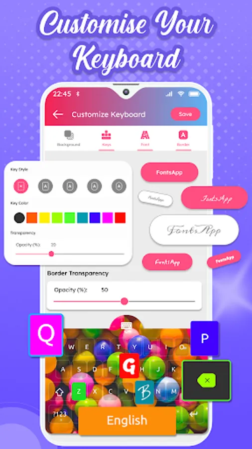 style and design keyboard with custom themes. Lots of fonts for the keyboard are