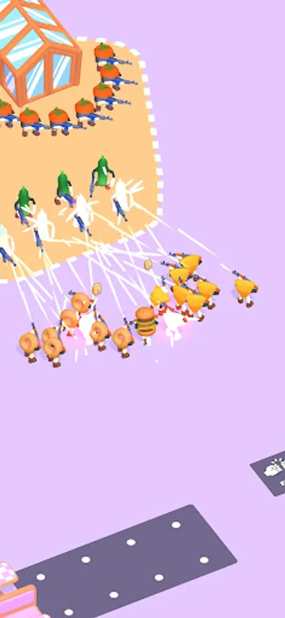 The great battle, the battle of Good and Evil. Junk food and healthy food will clash in a fight. You are a sandwich that needs to raise an army! Upgrade your character level to unlock cooler buildings. Build deep fryers, put microwaves and stoves. Get those veggies on fire!