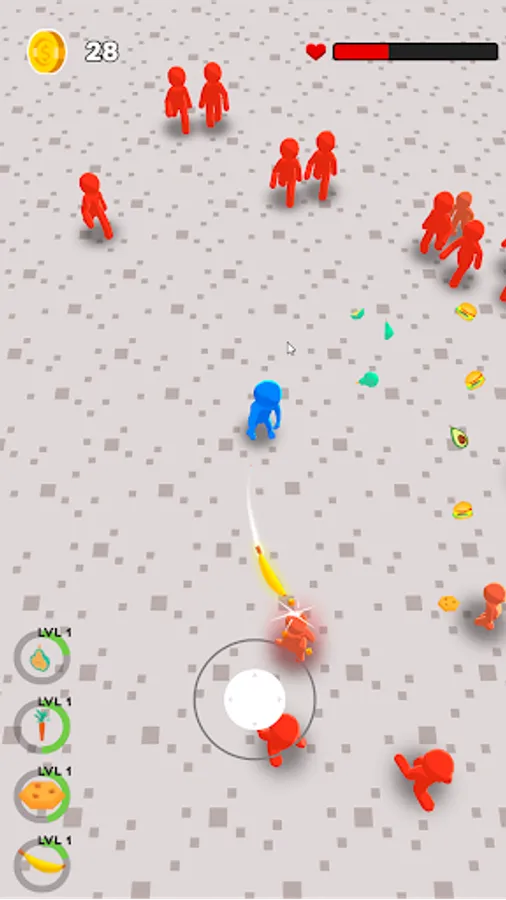 Food Fight Survivors offers an easy-to-play one-finger gameplay that allows you to control your character's movement while they aim and throw automatically. The game is presented in 3D animation, making it visually appealing and fun to play.