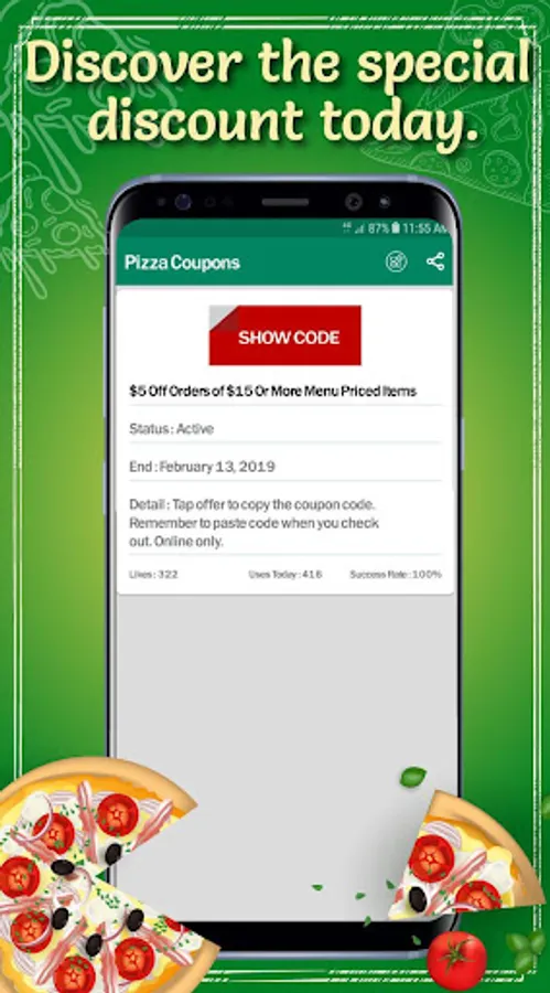 Pizza Coupons application is very friendly and easy to use as you can find Little Caesars, Papa John’s, Domino's, Pizza Hut coupons, and save the promo and codes for use later or even share to your friends. This Coupons app is created by third party and is not related to Papa Murphy’s, Little Caesar, Papa John's, Domino's, Pizza Hut coupons or any other company’s promo codes, coupons and deals.