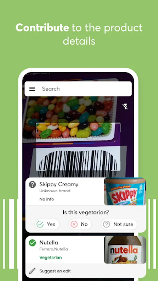 Find out for certain if a food or drink is vegan. Or check if it's vegetarian, gluten free, halal, kosher or sugar free. Plus you can also check for allergens, e-additives, preservatives and the nutritional values of foods.