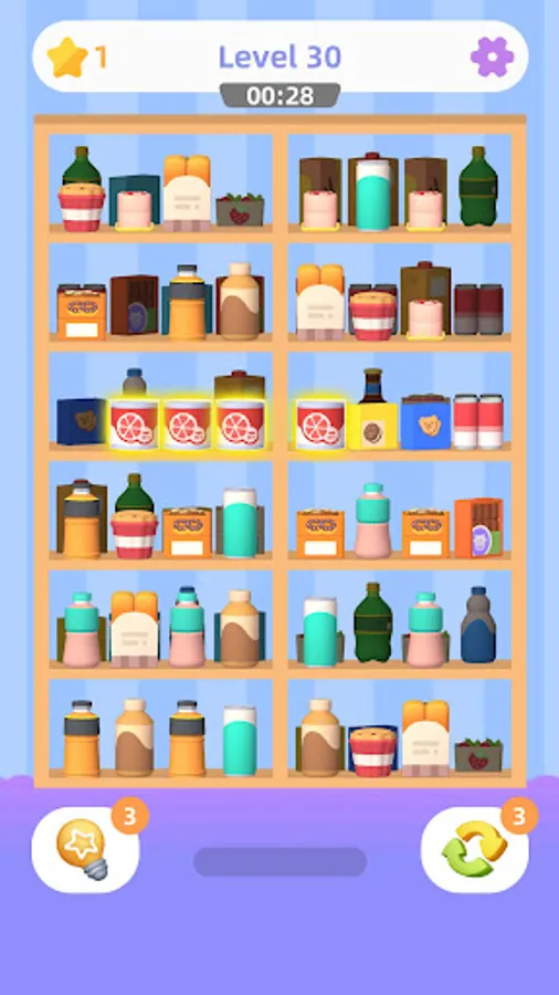 In this addictively goods sort game, you must move food items on shelves to eliminate two, three matching items in a row. With engaging goods triple gameplay and stunning match triple 3D effects, you'll be fully immersed in the game from the very first swipe.