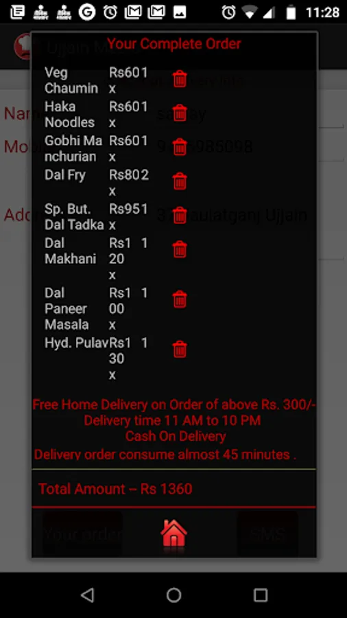 We deliver vegetarian food and we give free home delivery above Rs 300/- order.
