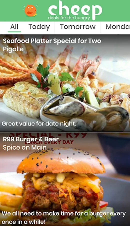 Currently located in Cape Town, Johannesburg, Durban highlighting the best restaurant, food & drink specials in your area. For the best promotions and specials in South Africa, you don't have to look further than Cheep - Deals for the Hungry.