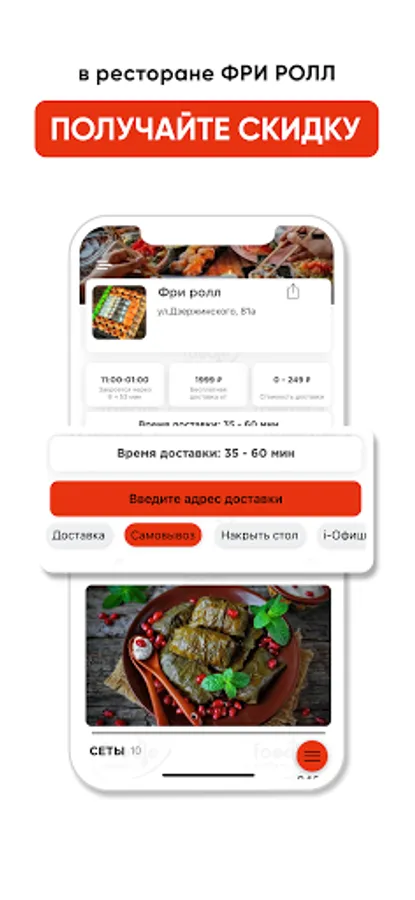 Delicate, fresh and hearty rolls, sushi, salads, snacks and even burgers from Freeroll with fast delivery in Kaluga are a must on your mobile. Download the application for ordering delivery and pickup and get bonuses and discounts.