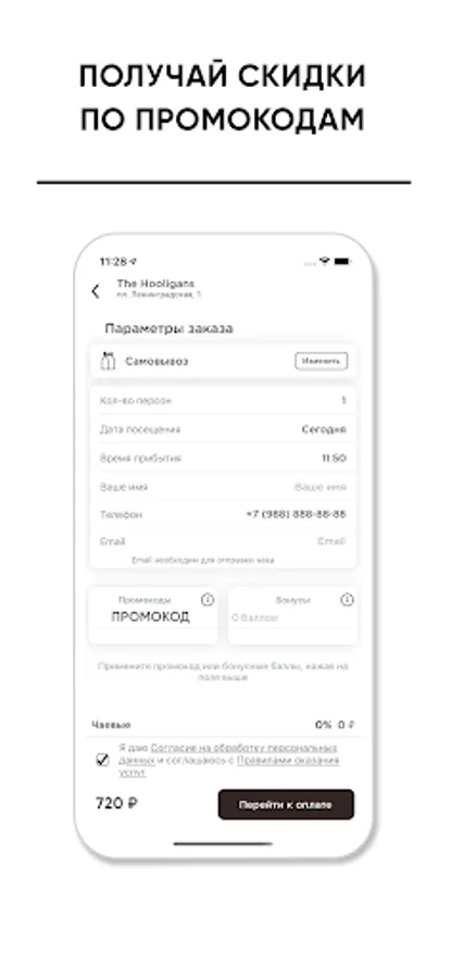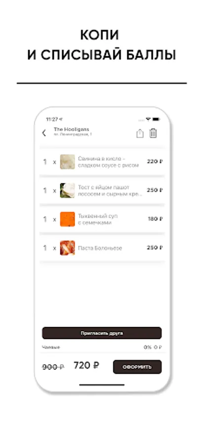 Get cashback, accumulate points and use them to pay for orders in the app.