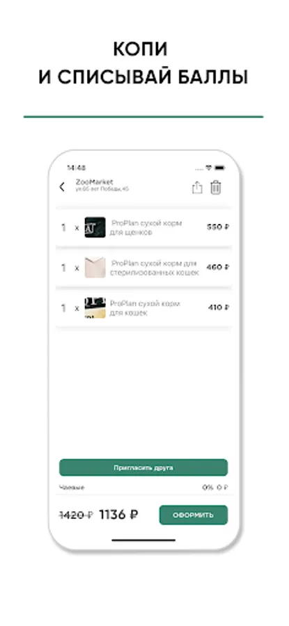 Food and medicine for dogs, cats and birds, educational toys, clothes, beds and many other useful things - it's easy to choose and pay right in the ZooMarket app.
