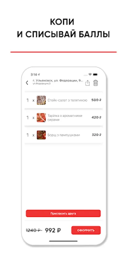 Order delivery, arrange pickup, book a table in our application. Earn points for orders and get discounts.
