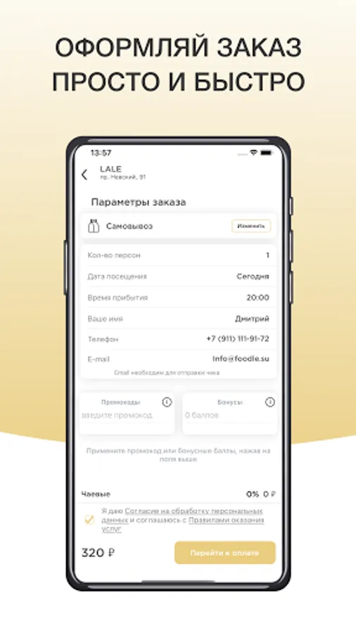 Book a table in our application or order delivery of your favorite dishes. When ordering to take away, just indicate the time of readiness and take the order without waiting!