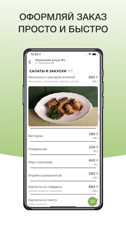 For your convenience, all dishes are divided into Russian and Caucasian cuisine. In addition to a large selection of hot and cold snacks, "Birch Grove" offers to try its unusual signature salad of avocado, shrimp, pine nuts and salmon caviar; and also a special dish "Star of the East" of tender duck breast with fruit sauce. The pride of the restaurant is traditional Caucasian dishes. More than 20 types of jams from Azerbaijan and rare sorts of tea are brought to "Birch Grove". Kebabs (there are more than 25 types of them here) and all hot dishes are served directly on the coals on a special tray - saj. The chef of the restaurant also invites you to try the dish "dolma" (vegetables stuffed with juicy meat), and the excellent Shah-pilaf - a performance dish.