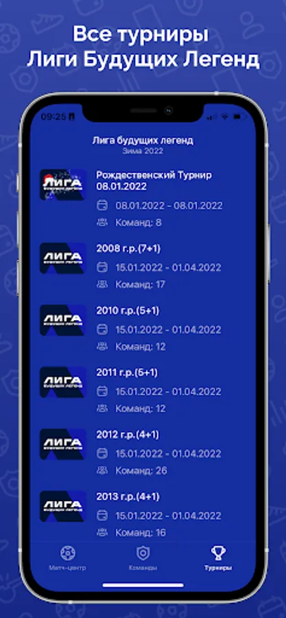 The League of Future Legends is a system of children's football tournaments in Russia among teams born in 2006-2016. In 2022, regular competitions are planned in Moscow in the format of four championships - winter (9 weeks), spring (7 weeks), autumn (7 weeks), autumn-winter (7 weeks) and in Syzran in the format of weekend tournaments.