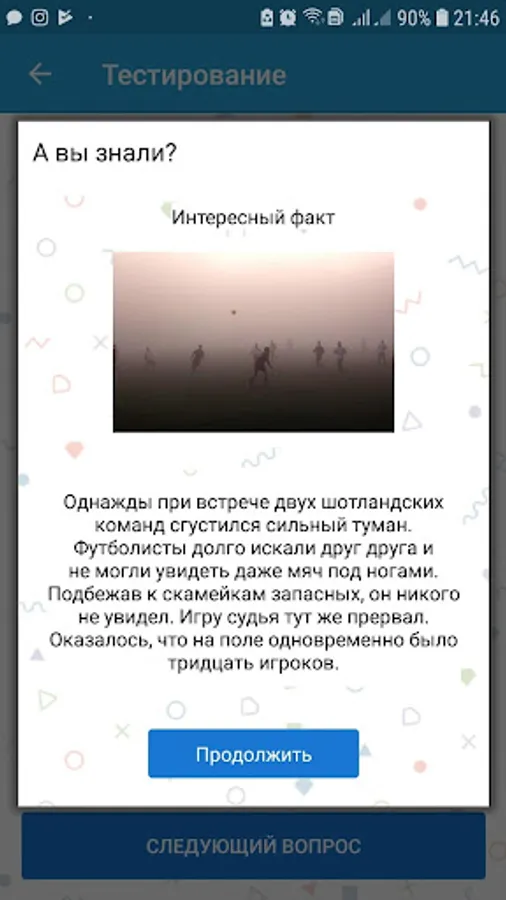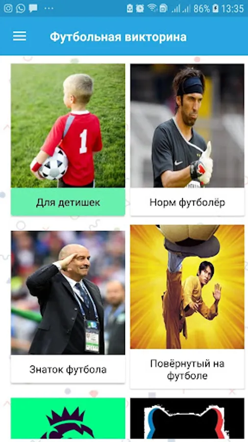 The application contains a set of tests to test your knowledge of football. Also in the application there are a lot of interesting facts about this wonderful sport.