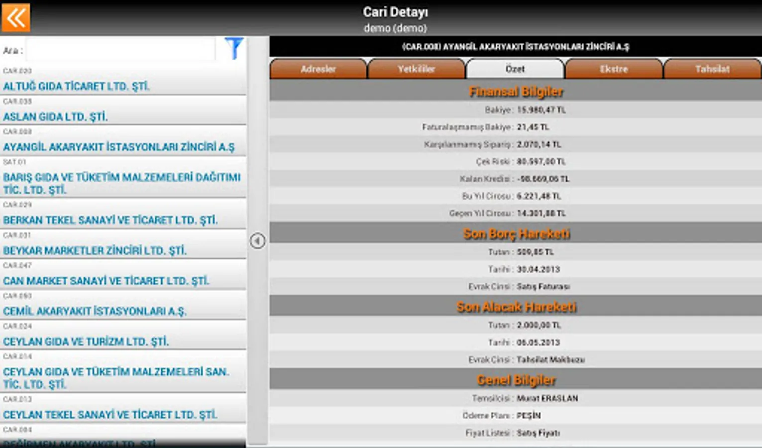 The application works synchronously with Mikro Yazılımevi V14 and V15 accounting program on tablets, mobile phones and handheld terminals.