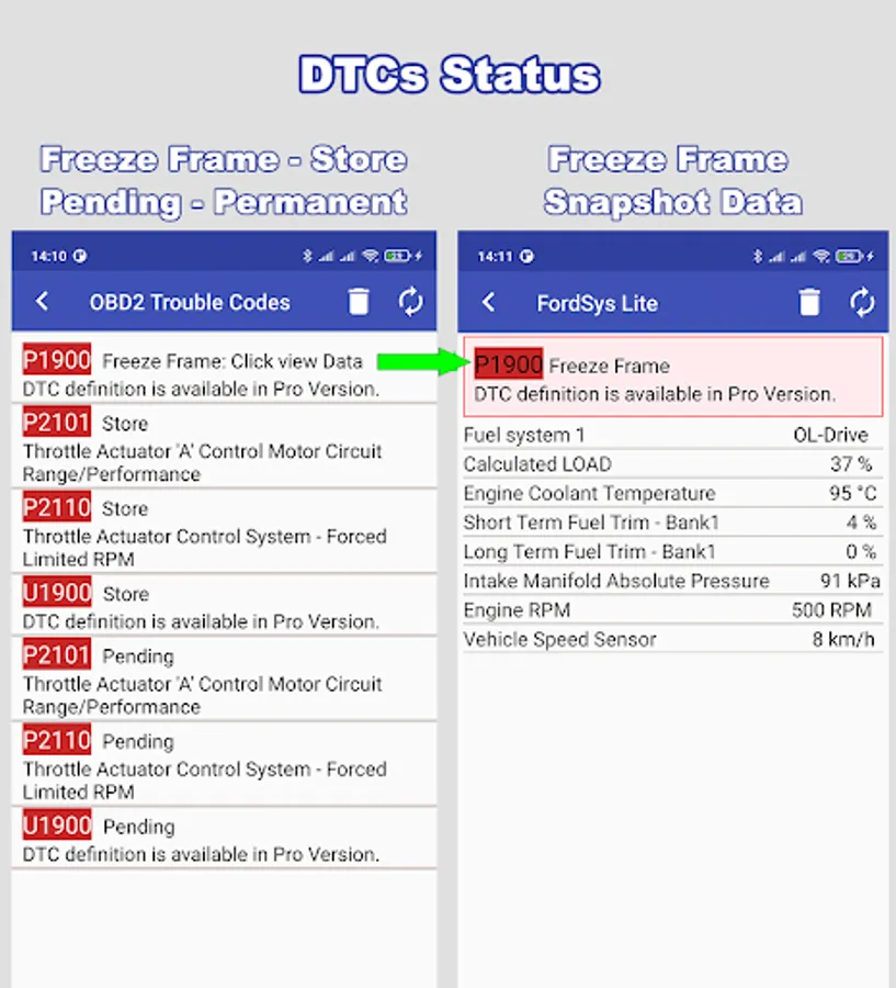 - Build-in DTCs database with over 5000 trouble codes of Ford manufacturer specific codes