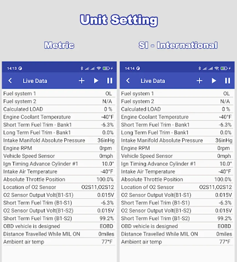 • Data Log/Live Data: full PIDs (support by your vehicle)