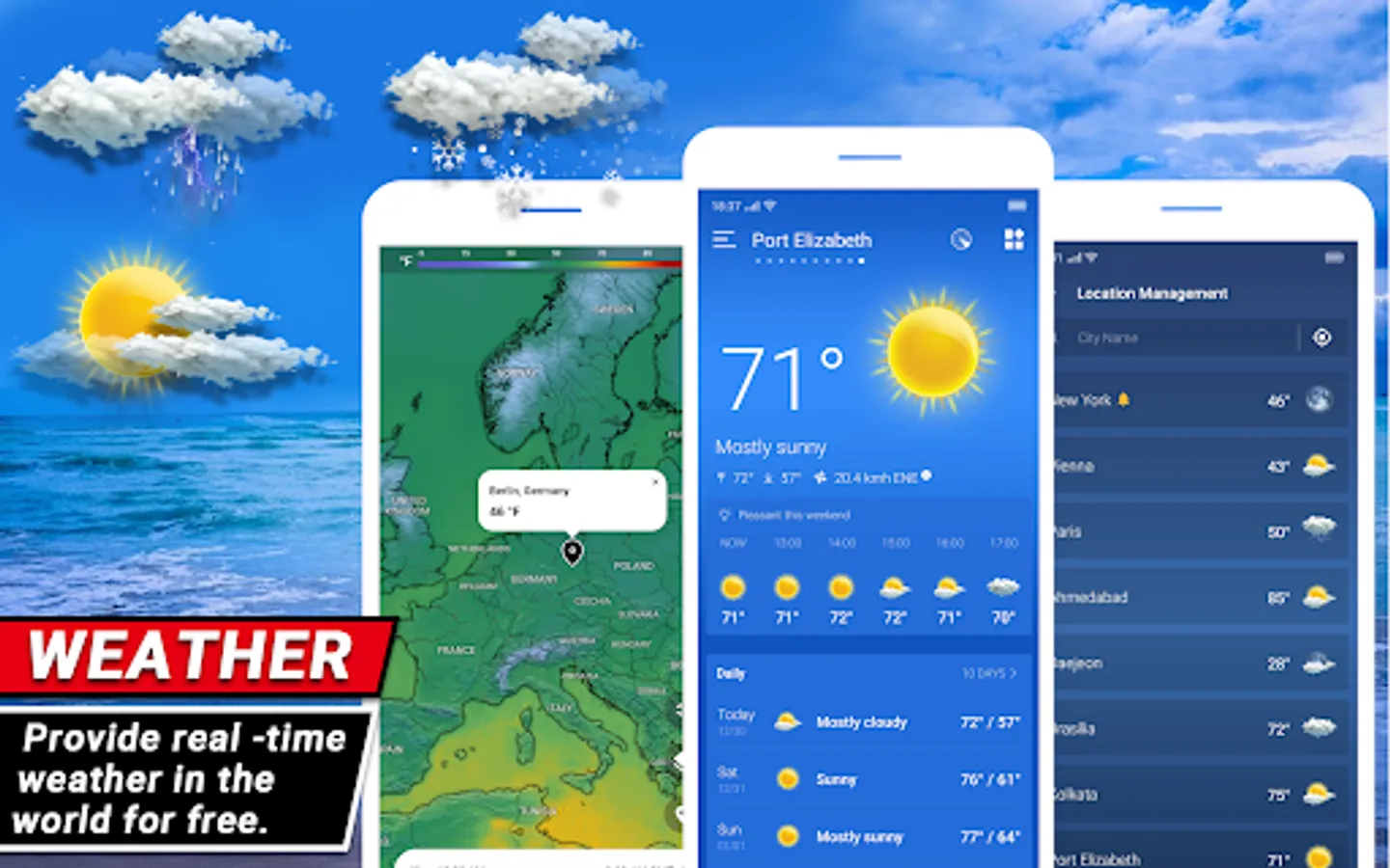 An accurate weather forecast app is must need for your everyday life to make your daily arrangement. Now you find our WeaUmbla weather app, which is free to provide global real-time weather, future weather predict and rain radar. This Weather Forecast is a weather app that combines accuracy, availability and beauty.